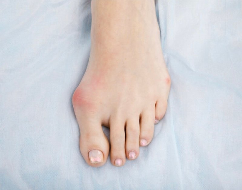 Bulto visible en la base del dedo gordo del pie.